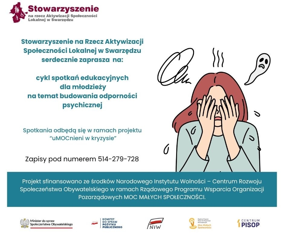 Projekt sfinansowano ze środków Narodowego Instytutu Wolności – Centrum Rozwoju Społeczeństwa Obywatelskiego w ramach Rządowego Programu Wsparcia Organizacji Pozarządowych MOC MAŁYCH SPOŁECZNOŚCI